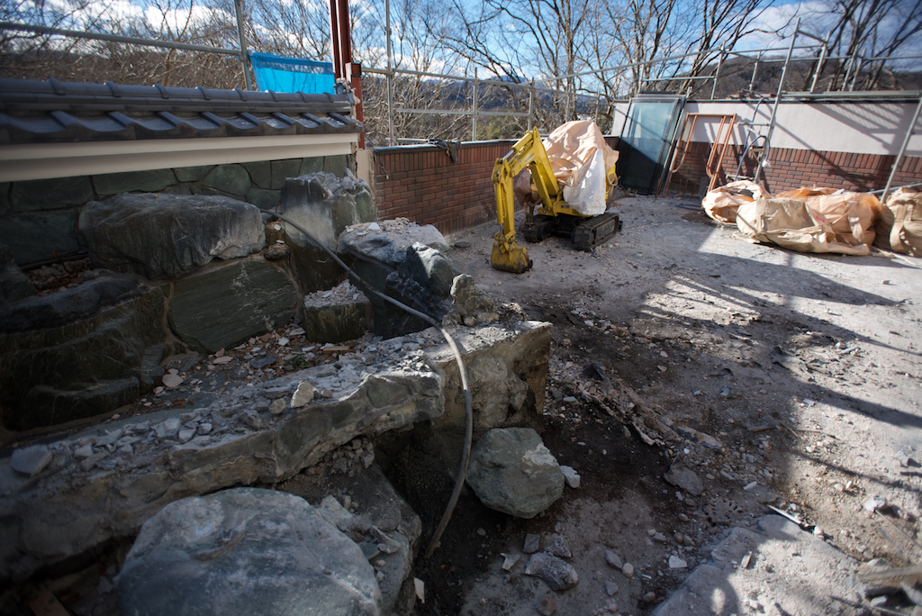 既存の2つの大浴場のコンクリートの削り、がら出し、