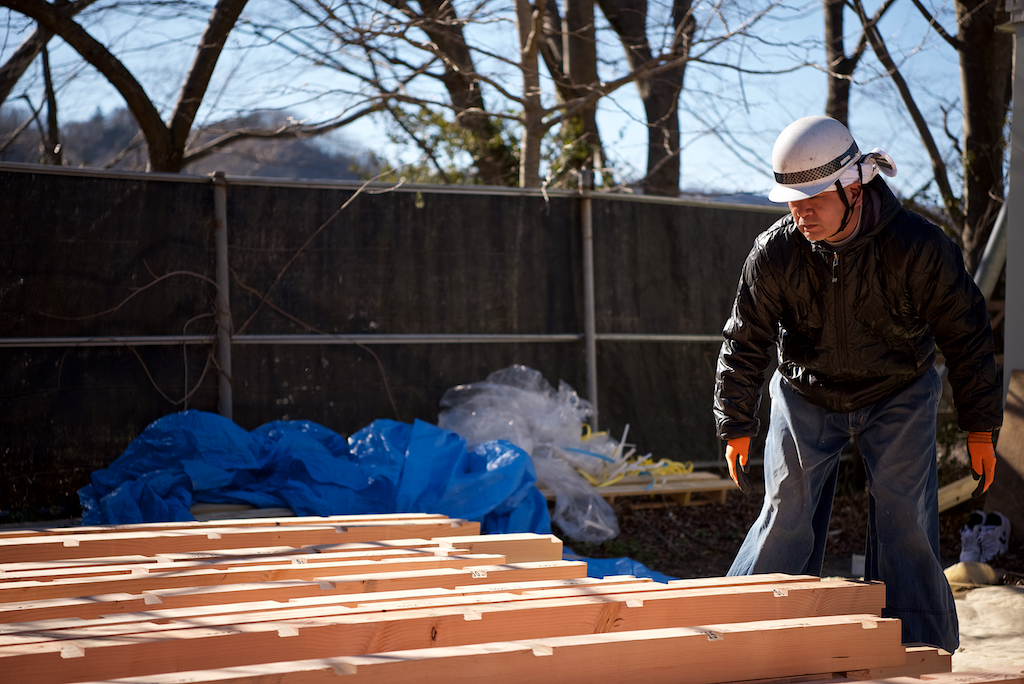 棟上げ式を行うにあたり、土台敷きを行っています。