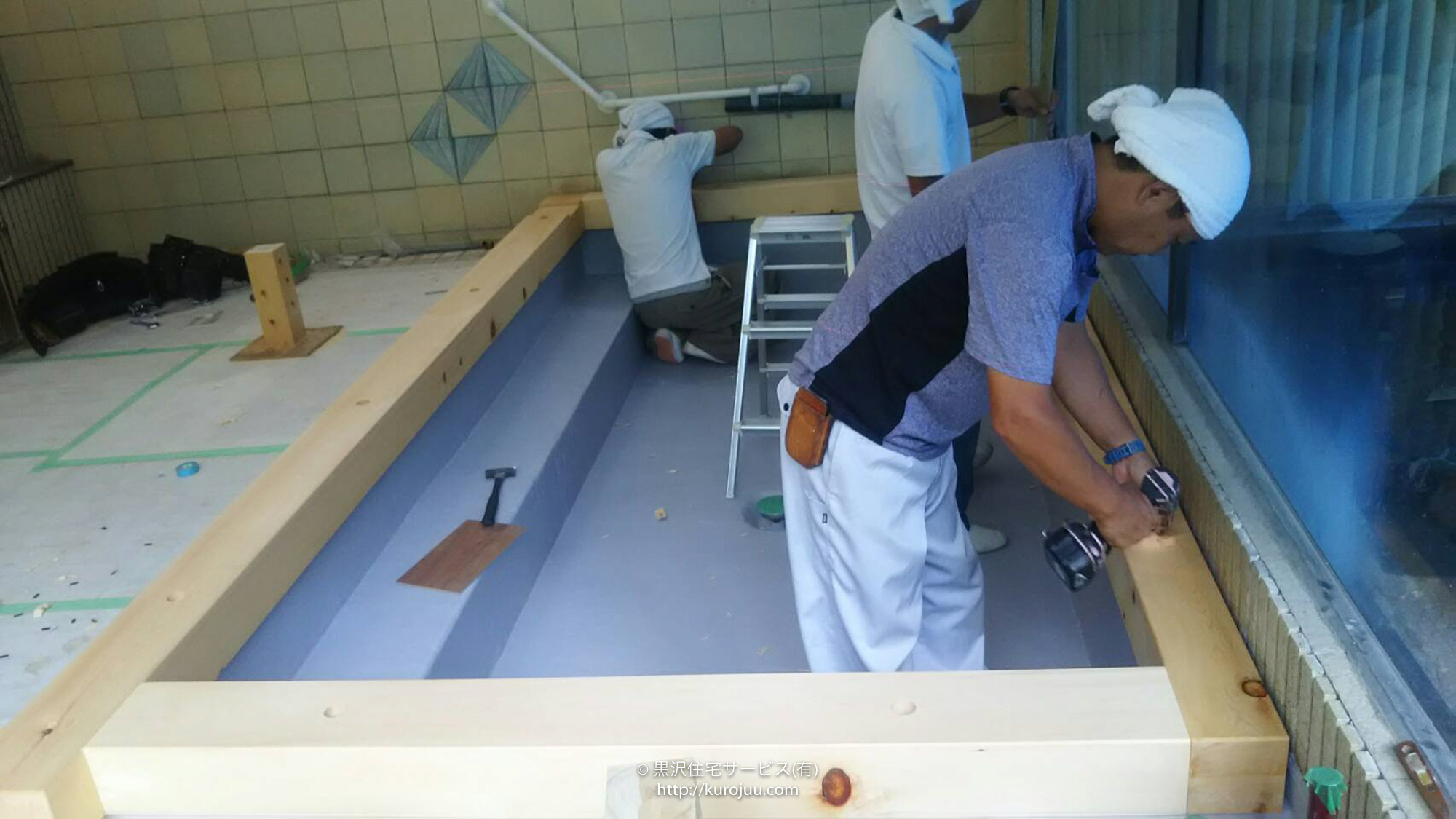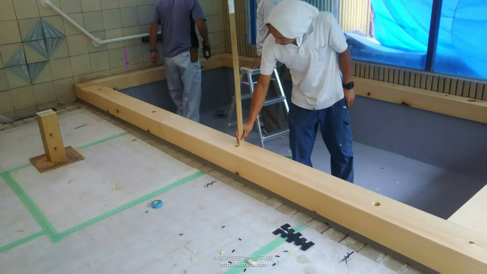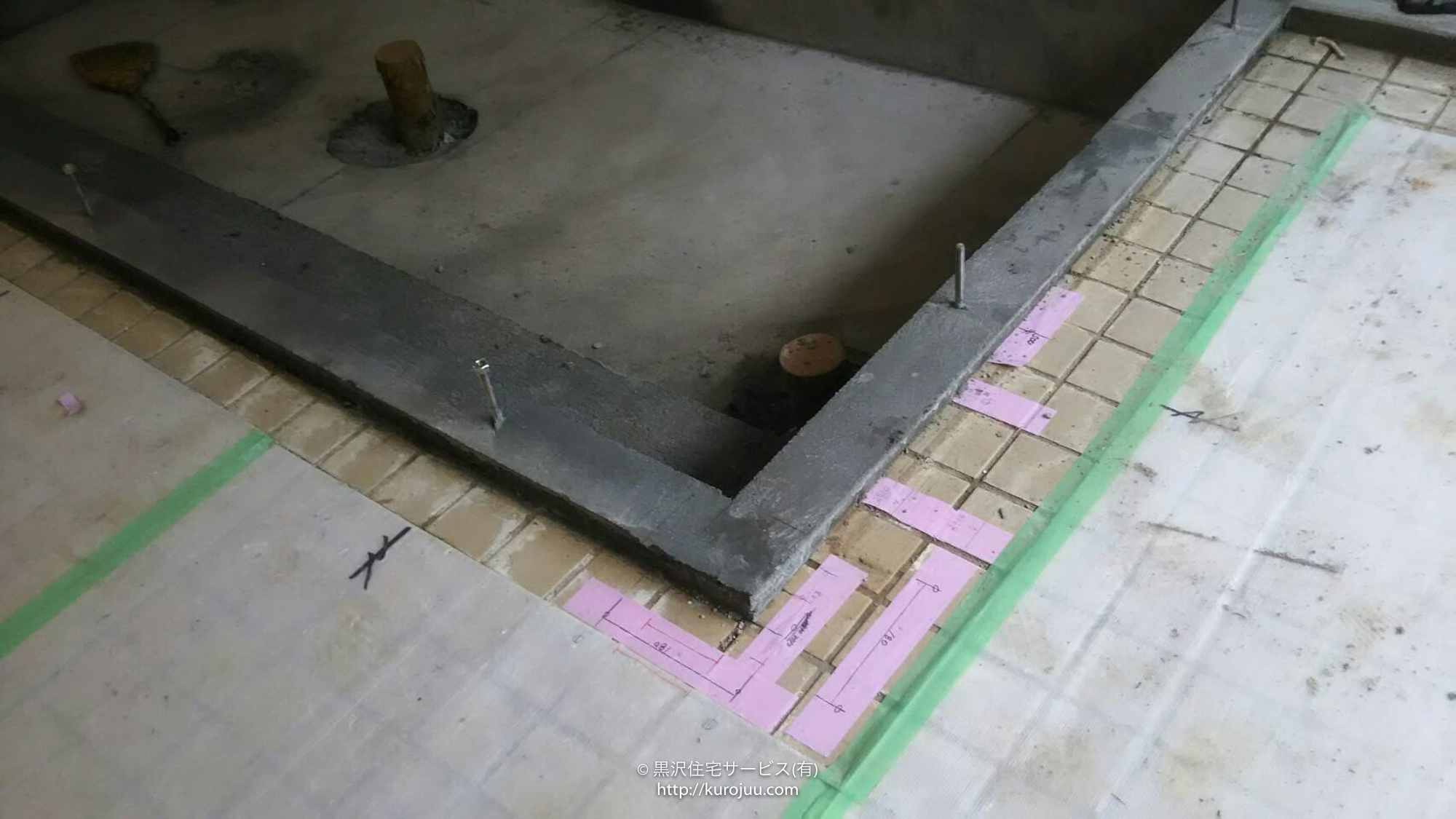 UB組立に先立ち、断熱材と防湿シートを施工し、UBの湿った空気が外部に接する断熱材に直接流れでない工法にしています。