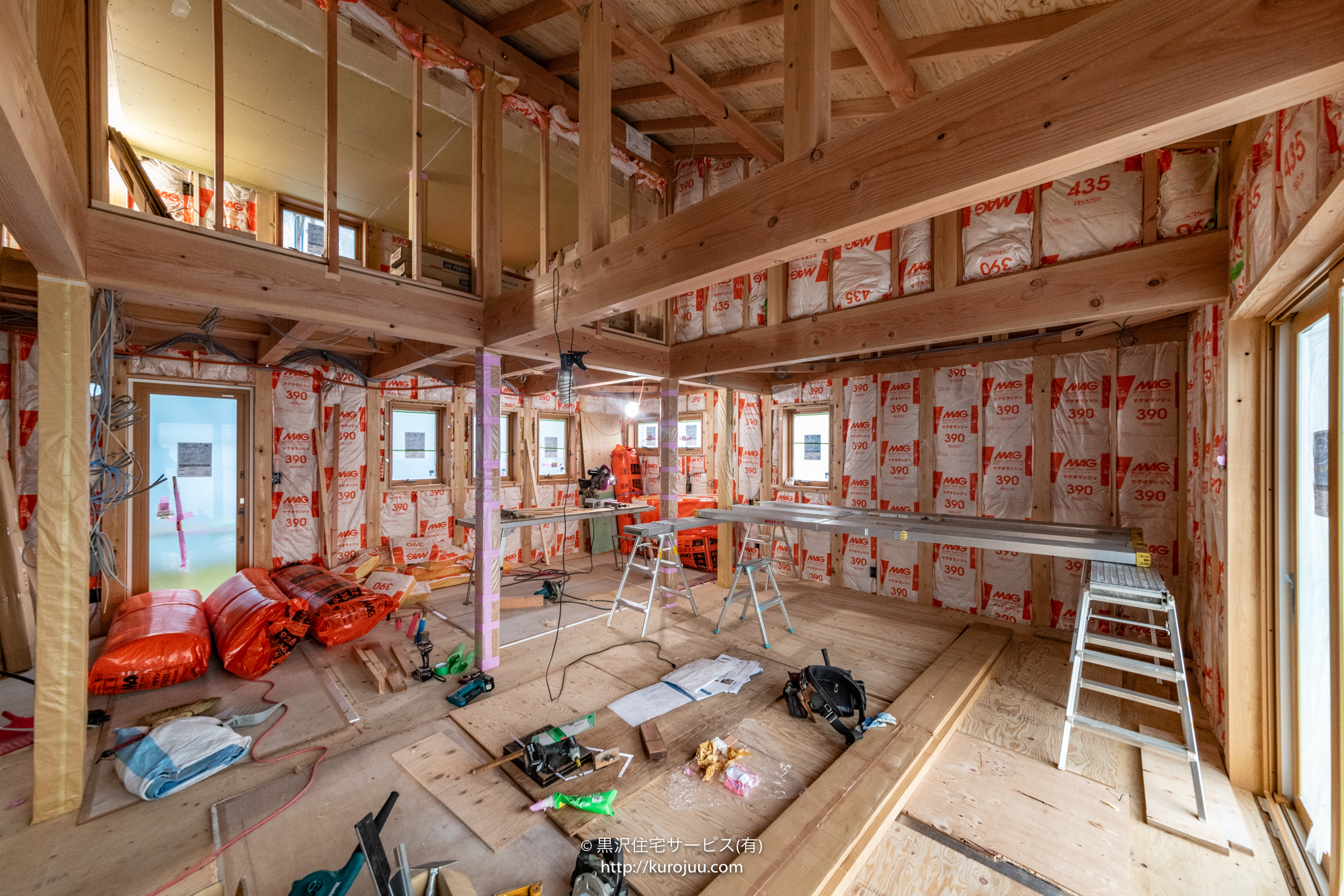 高性能断熱材が施工され天井・壁を気密シートで覆い
